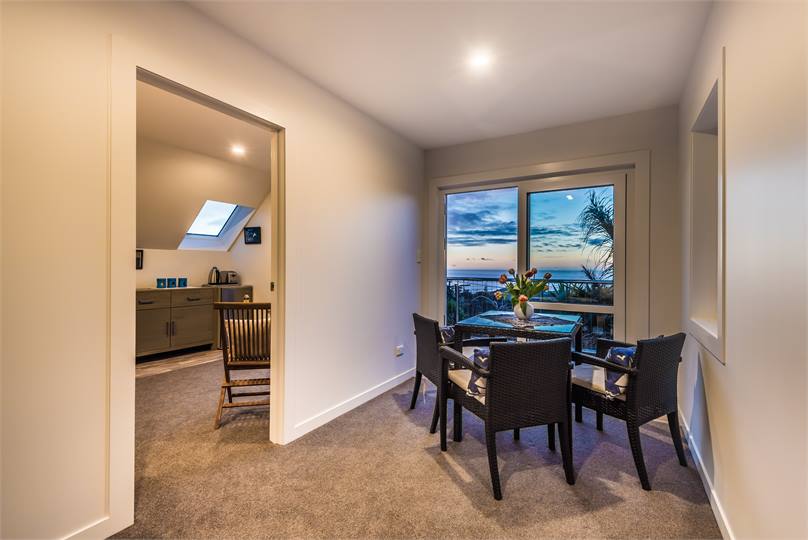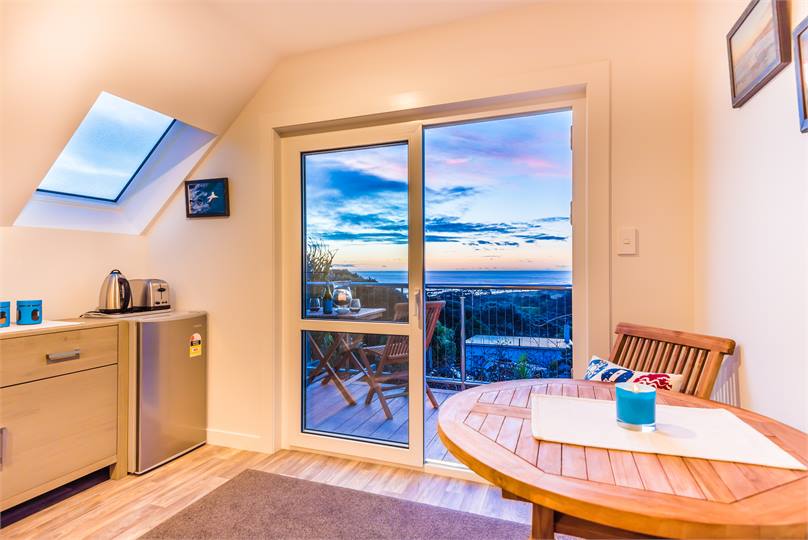 The 'Oaia' Suite comprises of a large guest room with a breakfast corner, a queen-size posturepedic bed, new en- suite bathroom and walk-in wardrobe. Direct access to the North West oriented balcony. BYO breakfast or walk only three minutes down to the Sand Dunz Cafe for an a la card breakfast.